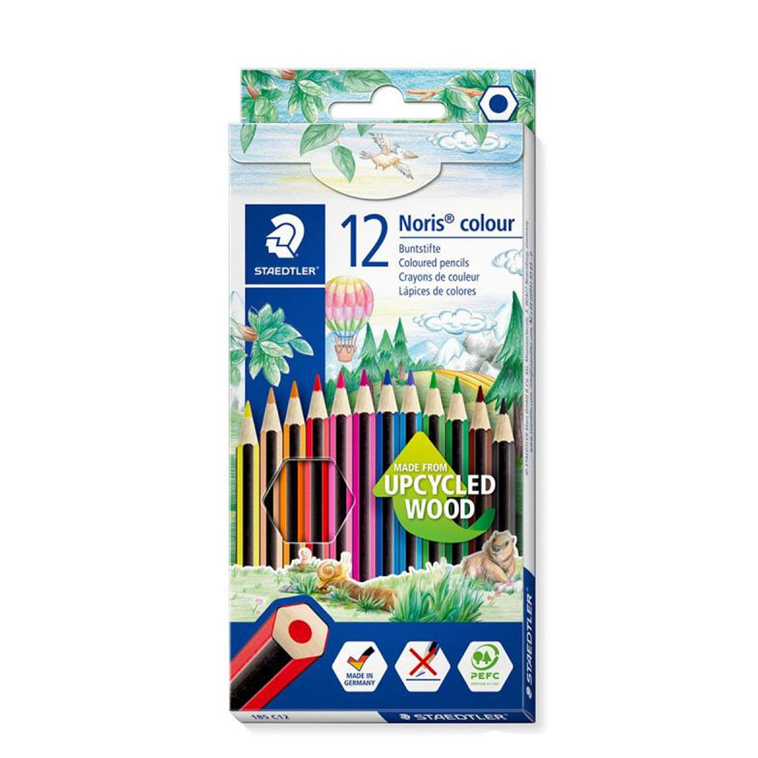 Drvene boje napravljene od prerađenog drveta; meka neklizajuća površina i visoka otpornost na lomljenje; atraktivan dizajn Noris pruga; sadržaj drveta potiče iz šuma kojima se održivo upravlja pod PEFC sertifikatom; 12 komada u pakovanju.