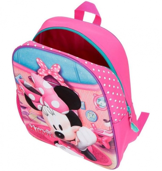 Uzmi ovaj super slatki Minnie Mouse ruksak gdje god da ideš! Ima jedan elastični džep sa strane i jedan veliki glavni odjeljak. Ramene trake su podesive i torba se može zatvoriti pomoću patent zatvarača. Materijal: poliester; Dimenzije: 33 x 27 x 11 cm (D x Š x D); Sadržaj: 8 litara; Tip zatvaranja: zatvarač; Starost: od 3 godine