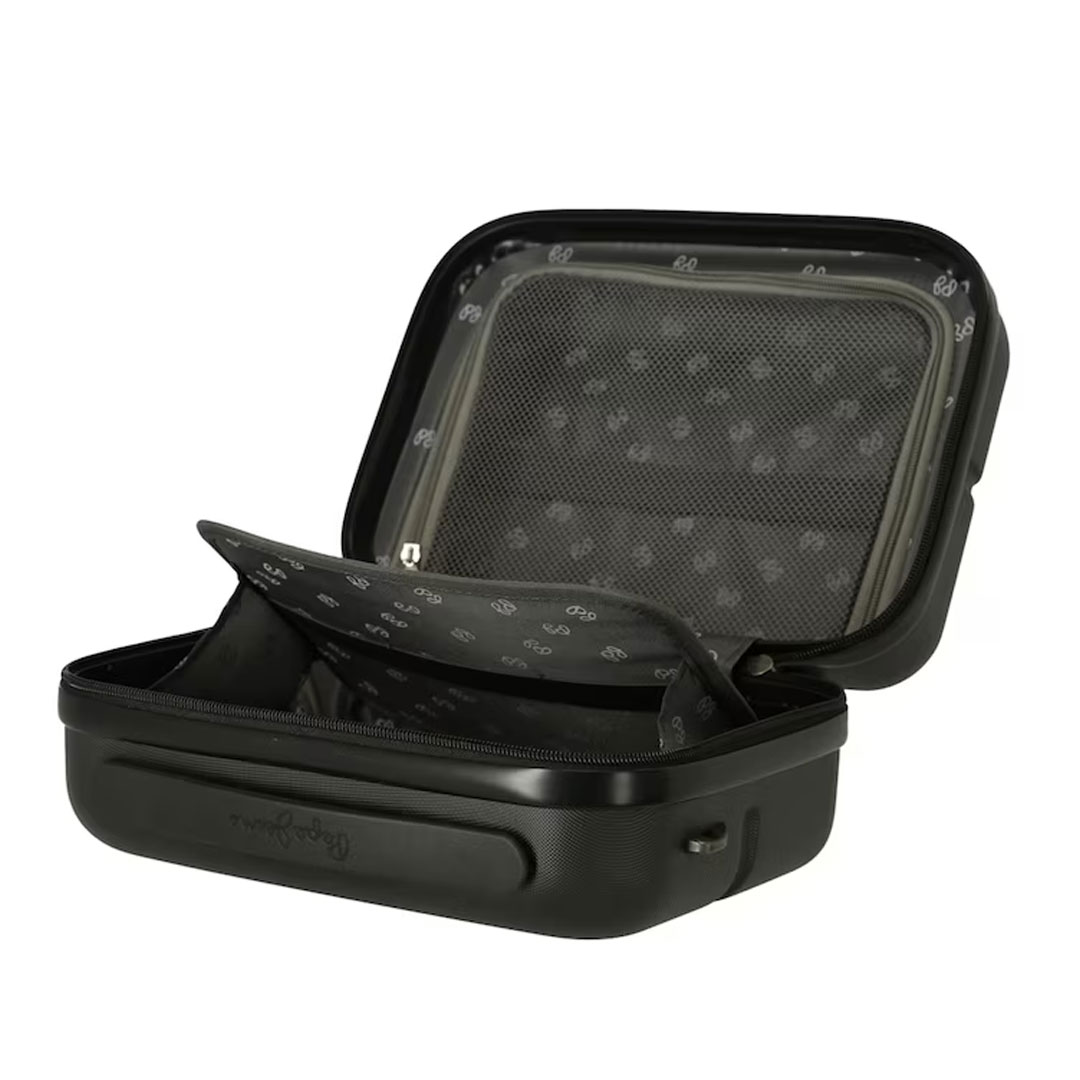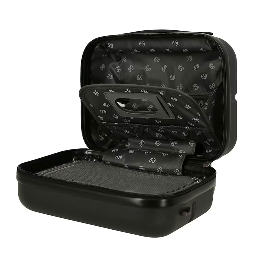 Toaletna torbica dimenzija 29 cm x 21 cm x 15 cm od ABS-a. Sadrži dvije pregrade, džep sa patent zatvaračem i džep sa elastičnim trakama i ogledalo za nošenje svih vaših ličnih higijenskih pribora dobro organiziranih. Mogućnost nošenja sa ugrađenim remenom za nošenje preko ramena ili prilagođavanje koferu pomoću zadnjeg remena radi uštede prostora.Patentni zatvarač na potezanje sa rupama za katanac.