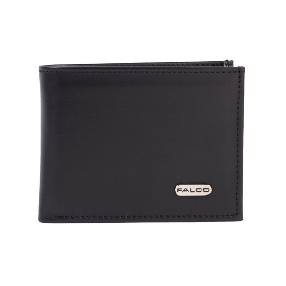 Klasičan muški novčanik je izrađen od kvalitetne prirodne kože. Ima dvije velike pregrade za novac, pregrade za kartice i lična dokumenta, kao i džep za sitan novac. Spoljni izgled novčanika je upotpunjen metalnom pločicom Falco. Dimenzija: 2.5x12x9.5 cm.