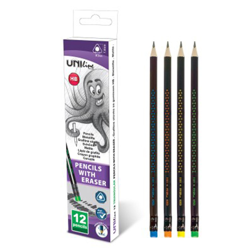 Olovka grafitna Hb triangl crna sa gumicom, UNI Line