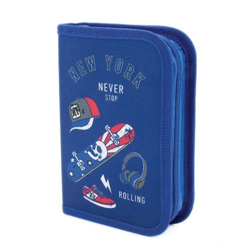 Pernica prazna 1 zip i dva preklopa. Dimenzija pernice je 21.5 x 14.5 x 4 cm. Izrađena je od materijala 600D.