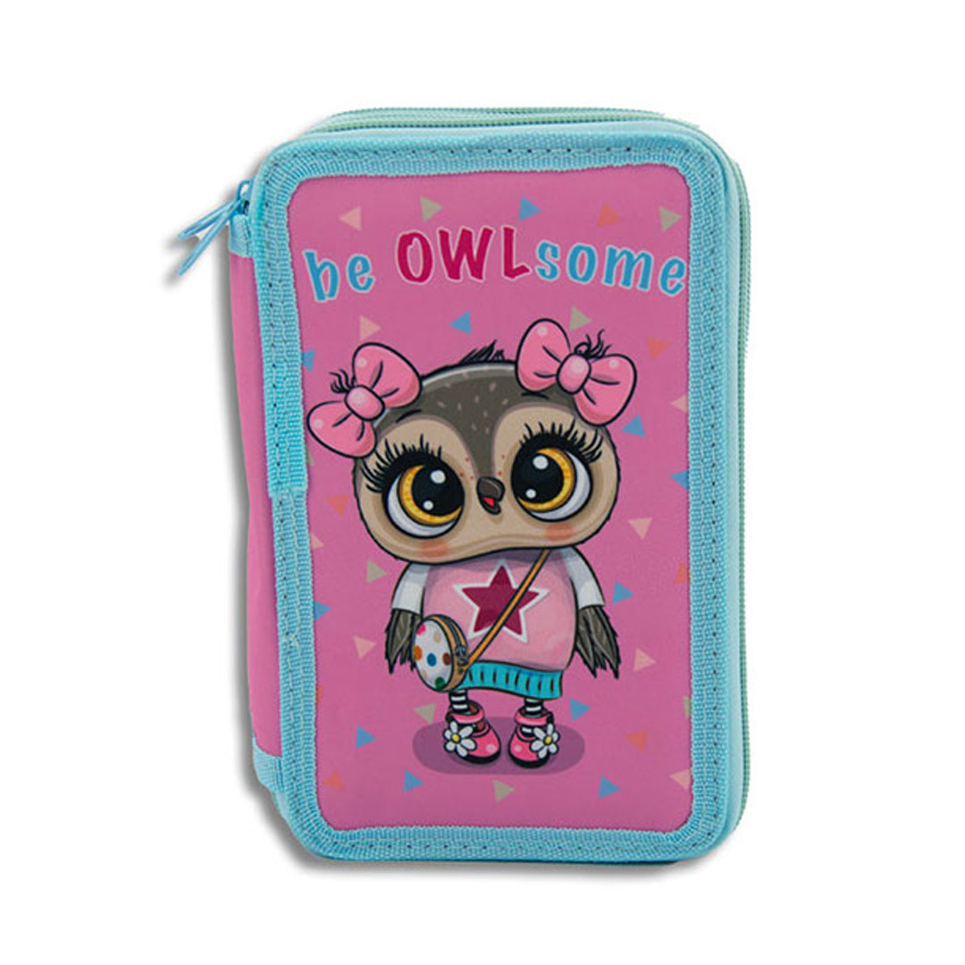 Pernica puna 3 zipa. Dimenzija 19.5x 12.5 x 6 cm. Sadrži tri zipa. Izrađena je od materijala 600D. Pernica sadrži: 18 drvenih boja; 18 flomastera; zarezač; gumicu; hemijsku olovku; lenjir; 2 grafitne olovke.