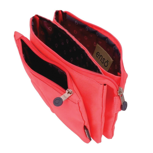 Pernica 22 cm x 12 cm x 5 cm od poliestera. Dvije pregrade sa patent zatvaračem i prednji džep za bolju organizaciju. Savršena veličina za nošenje u ruksaku ili torbici.