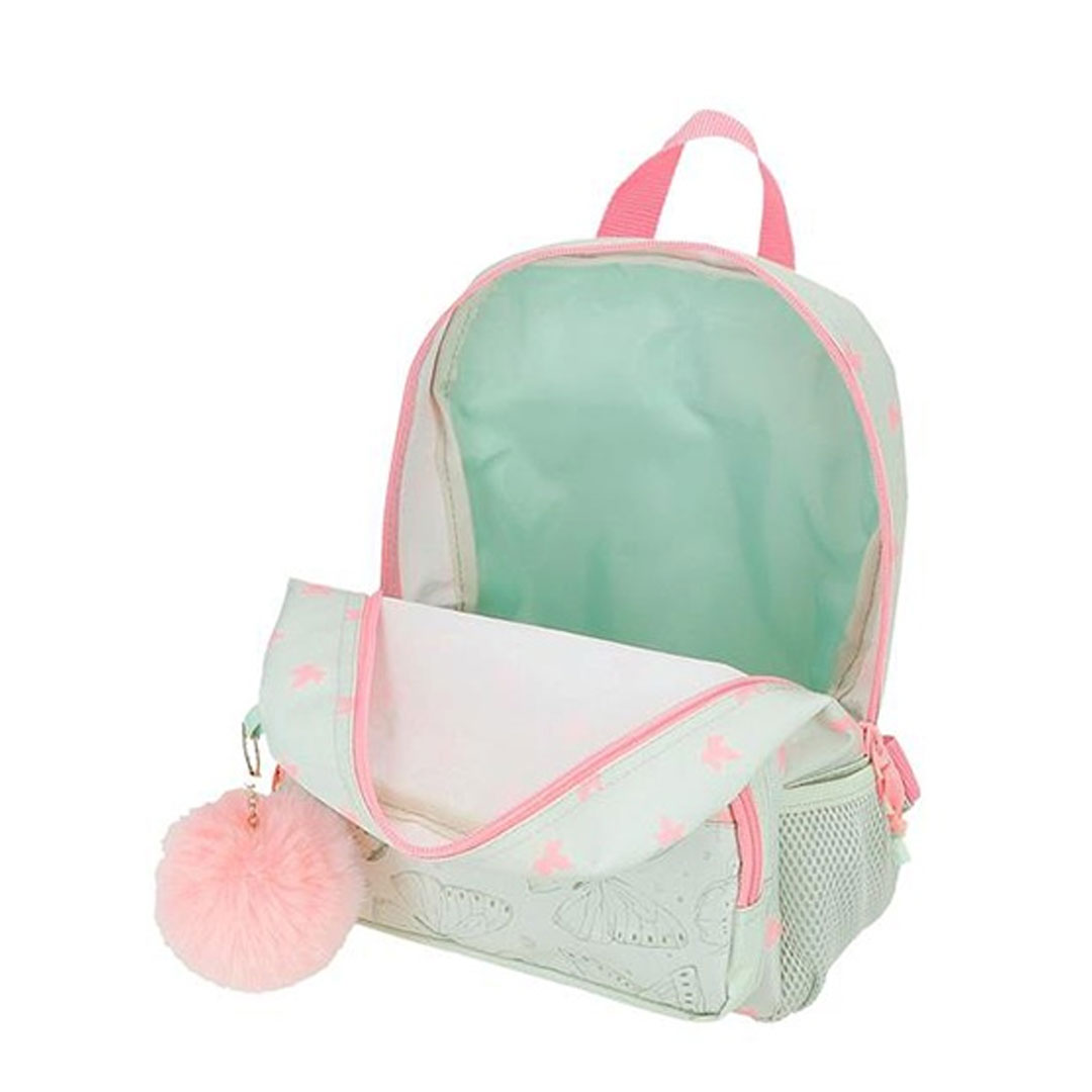 Savršen saputnik za šetnje, vrtić i svakodnevne male avanture. Ovaj preslatki ruksak iz kolekcije Enchanted Forest osvaja na prvi pogled zahvaljujući nježnoj nana zelenoj boji, romantičnim roze detaljima i čarobnom motivu leptira.