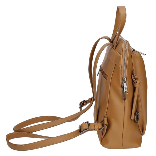Ruksak posjeduje tri unutrašnja džepa, jedan od njih sa patent zatvaračem, za odlaganje pribora i ličnih stvari. Prednji džep i zadnji džep sa patent zatvaračem, za veću sigurnost i poboljšanje organizacije ličnih stvari. Pruža više udobnosti od torbe zahvaljujući podesivim trakama koje se savršeno prilagođavaju leđima. Dimenzija: 26 cm x 29 cm x 10 cm ruksak od sintetičke kože.