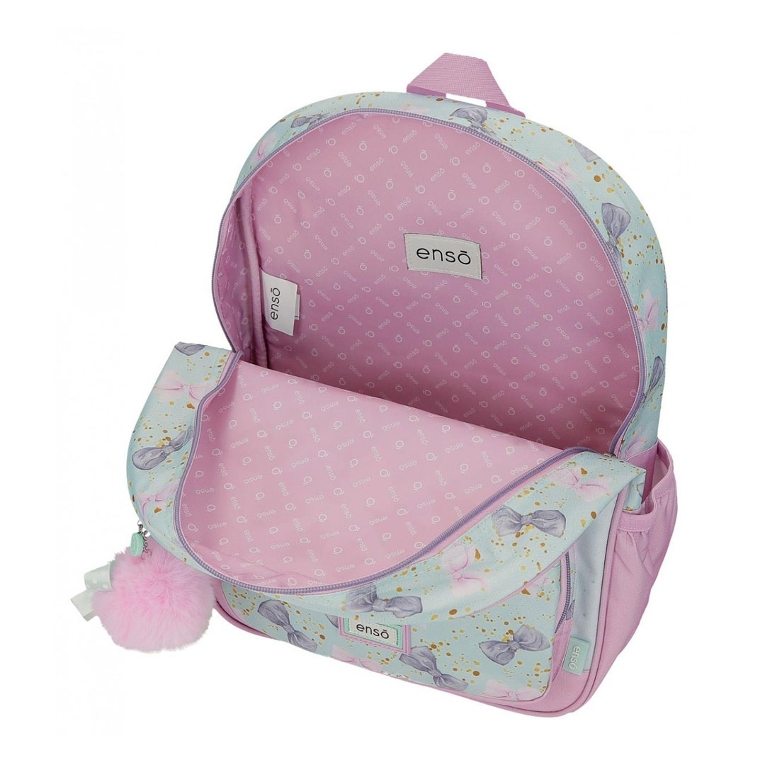 Školski ruksak Enso Merci Amour izrađen je od poliestera i ima poseban detalj: zabavni ukrasni pompon. Ovaj ruksak je izuzetno svestran i praktičan , idealan za svakodnevnu upotrebu. Ima glavni pretinac velikog kapaciteta, savršen za knjige i bilježnice, a također ima dva prednja džepa i bočne džepove, idealne za odlaganje pribora i gedžeta . Njegove dimenzije su 30 cm x 38 cm x 12 cm.