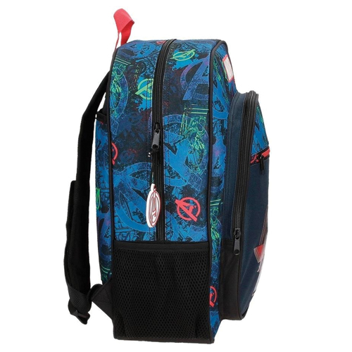 Marvel On the Warpath ruksak s glavnim pretincem i dva prednja džepa sa patentnim zatvaračem za bolju organizaciju vašeg školskog pribora. Sa širokim, ergonomskim i podstavljenim naramenicama koje se savršeno prilagođavaju leđima i mogućnošću ugradnje opcionih kolica zahvaljujući stražnjoj traci. Idealan za nošenje knjiga, bilježnica, fascikli i fascikli veličine DIN A4. Dimenzije: 30 x 38 x 12 cm.