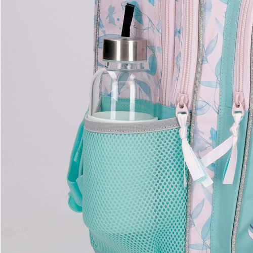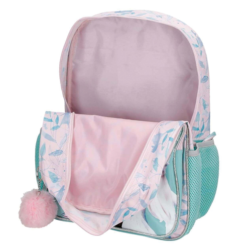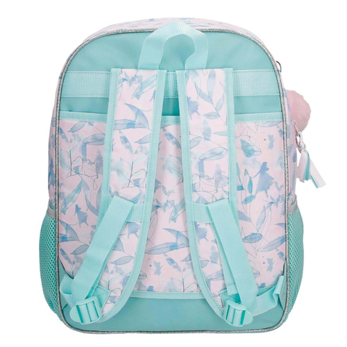 Dva bočna džepa za odlaganje boce vode i ostalih dodataka. Široke, ergonomske i podstavljene naramenice koje se savršeno prilagođavaju leđima i mogućnost ugradnje opcionih kolica zahvaljujući stražnjoj traci. Ruksak od poliestera 30 cm x 40 cm x 13 cm .