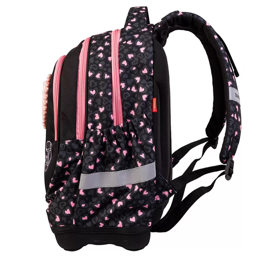 Ruksak je posebno dizajniran za djecu koja pohađaju prve razrede osnovnih škola. Ergonomska čvrsta leša izdašno su prsvučena vrhunskim materijalima i konstruisana tako da vazduh cirkuliše i tako sprječava znojenje. Za bolju vidljivost djeteta u mraku ruksak ima sa svih strana reflektirajuće trake. Školski ranac ima tvrdo dno koje je odignuto, tako da je ruksak zaštićen od vode i prljavštine na podu. Dimenzija: 43 x 32 x 18 cm.