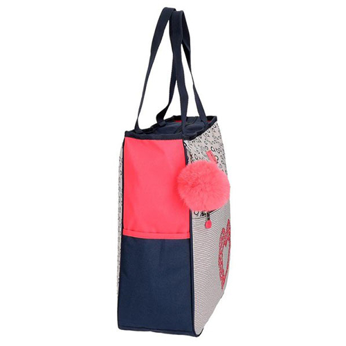 Velika torbica Enso srca sa dve ručke i jednim odeljkom, velikim džepom prednjeg džepa i prekrasnom dekorativnom pumpom. Pogodan za svakodnevni život i dovoljno velik da primi lične svakodnevne predmete i vešernicu za hladnije večernje šetnje, zašto ne udžbenici i školske beležnice ili predavanja. Veličina: 34 x 36 x 14 cm Materijal: poliester