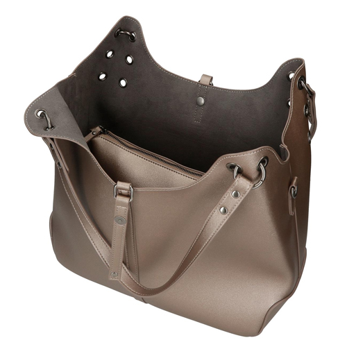 Sintetička koža,posjeduje dodatnu tašnicu unutar torbe sa patent zatvaračem i naramenicom za nošenje na rame. Kratka ručka i podesiva naramenica s karabinom za veći komfor i mogućnost nošenja kao torbe. Magnetno zatvaranje klikova.
