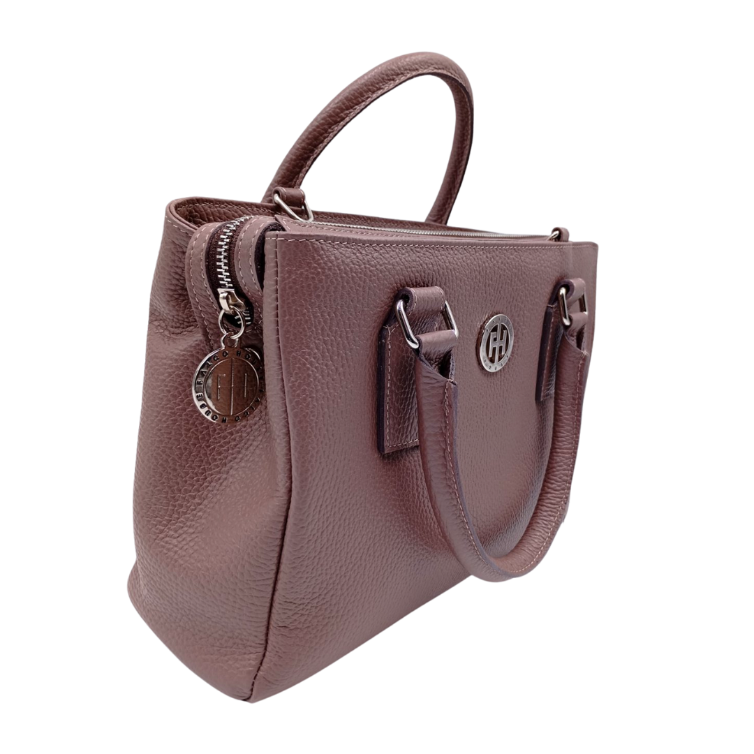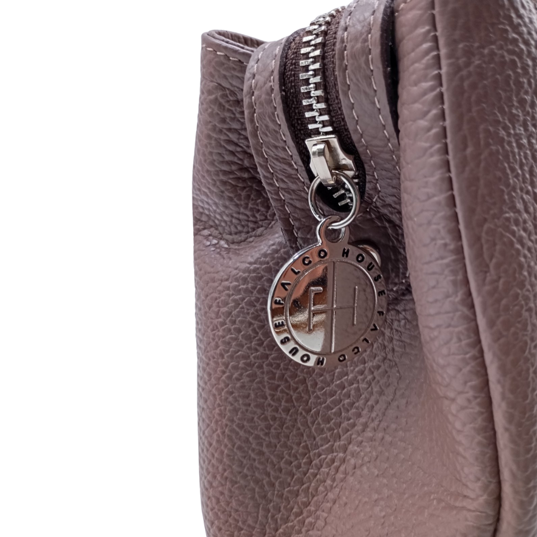 Ženska torba iz nove luksuzne FH kolekcije je izrađena od kvalitetne prirodne kože. Unutrašnjost je veoma praktična i komotna, podijeljena pregradom sa cipom. Dugačka, podesiva kožna ručka omogućava dvije varijante nošenja, kao klasičnu tašnu i kao cross body. Ima i dvije kratke ručke za nošenje u ruci. Izgled je upotpunjen metalnim medaljonom Falco House. Dimenzija: 29 x 20 x 10 cm. Težina: 0.830 kg.