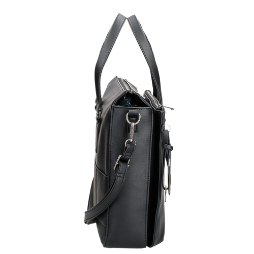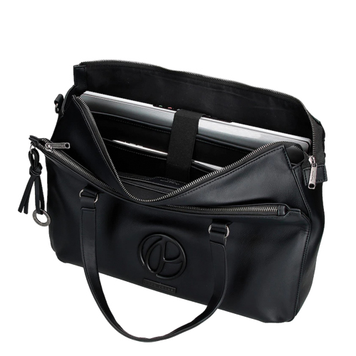 Torba za kompjuter 40 cm x 30 cm x 8 cm od sintetičke kože. Dva specifična pretinca unutra: jedan za računar do 15,6 inča i drugi za tablet do 10,3 inča Tri unutrašnja džepa, od kojih jedan sa patent zatvaračem, za odlaganje pribora i ličnih stvari. Kaiš koji se može skinuti i podesiv za udobno nošenje i zadnji remen za prilagođavanje koferu kada putujete.