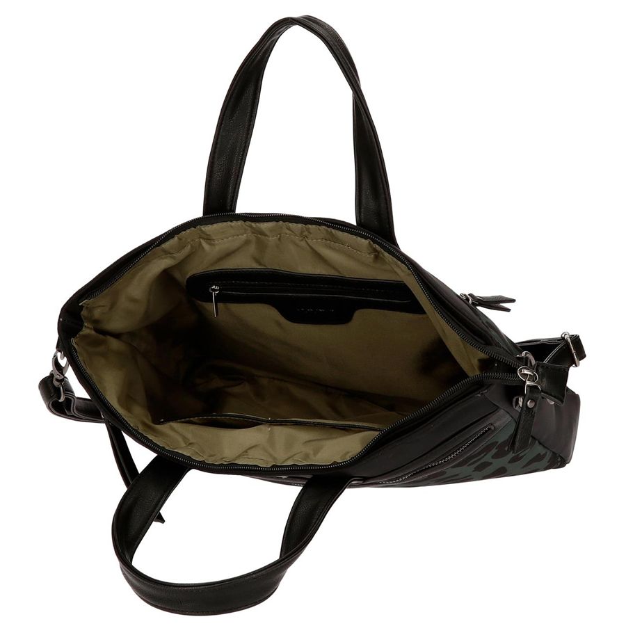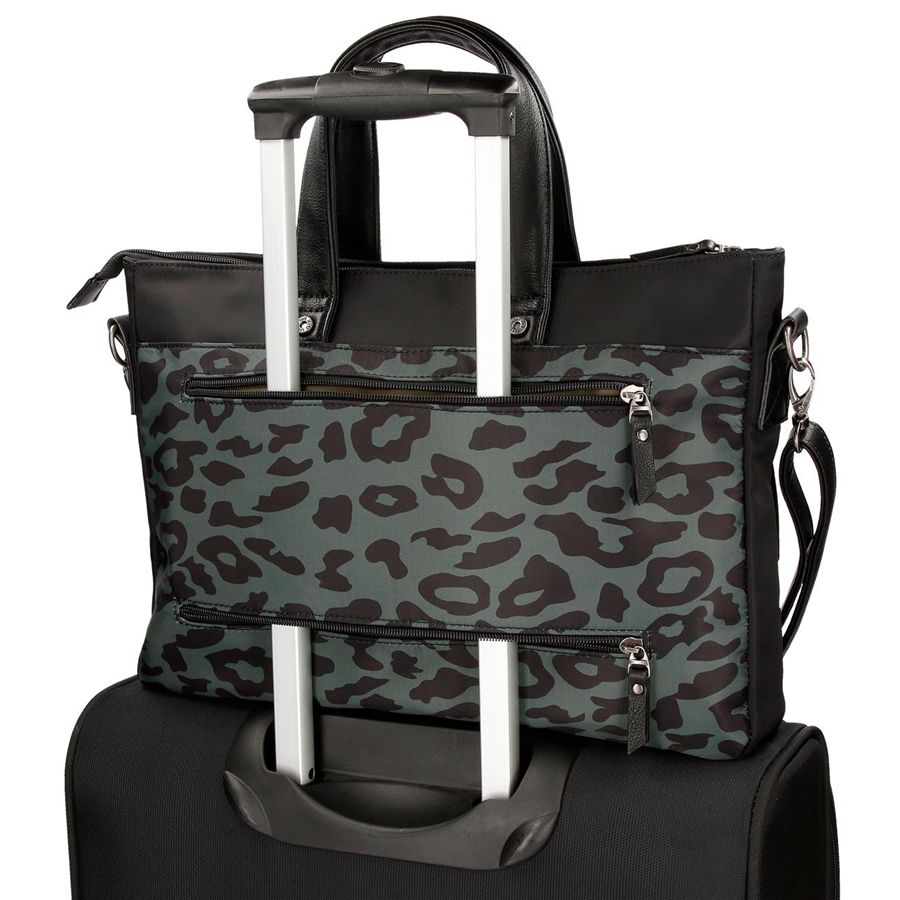 Torba za laptop, dimenzije 28 cm x 39 cm x 6,5 cm, izrađena od poliestera sintetičkom kožnom štampom. Glavni odeljak sa tri unutrašnja džepa, jedan od njih sa zatvaračem i sa kapacitetom za skladištenje računara do 15,6 inča. Prednji džep za poboljšanje organizacije dodatne opreme. Višednevni način prenosa: aktovka ili kao torba za ramena. Pored mogućnosti prilagođavanja sa koferom sa dve zadnje zipove.